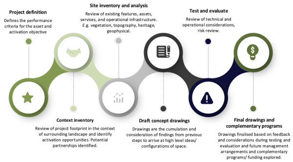 Put simply, activation of space is about rethinking how existing and future infrastructure, land and assets are used, and how they can be reimagined to deliver broader social, cultural, environmental and recreational benefits.